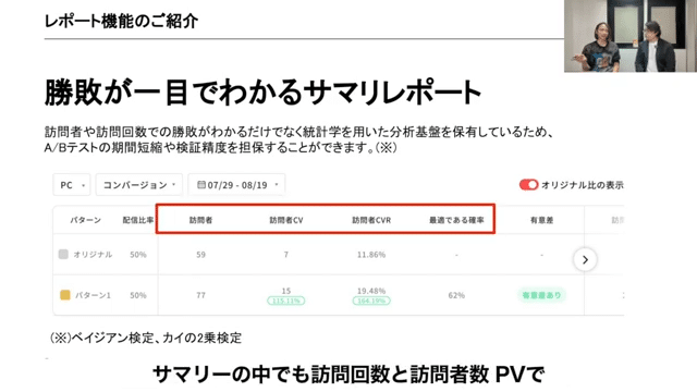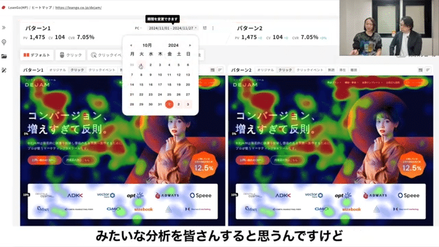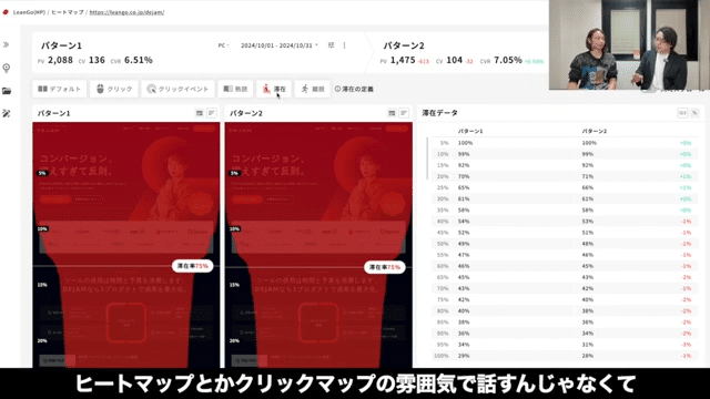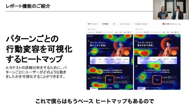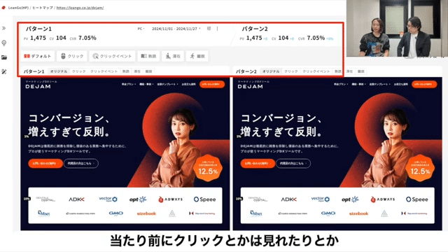 ヒートマップとかクリックマップの雰囲気で話すんじゃなく、どっちが良かったのかというのを具体的な数値で説明ができると。