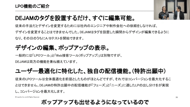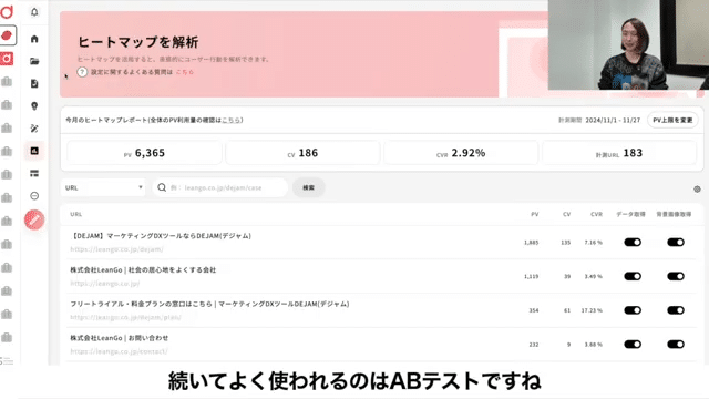 実際にABテストだったりとか、CRO、LPOというのをひたすらやっている会社が使っているDEJAMということですね。