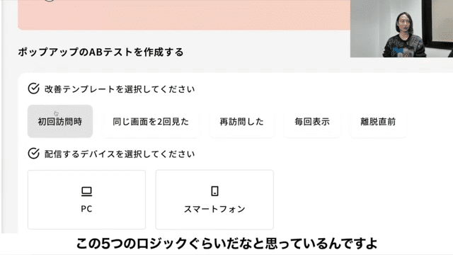 けど僕らもポップアップだったりWEB接客を使い倒して思ったのが、結局やるABテストというかポップアップってこの5つのロジックくらいだなと思っているんですよ。
