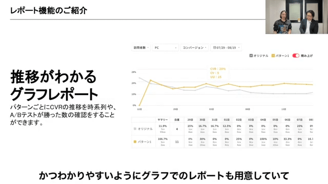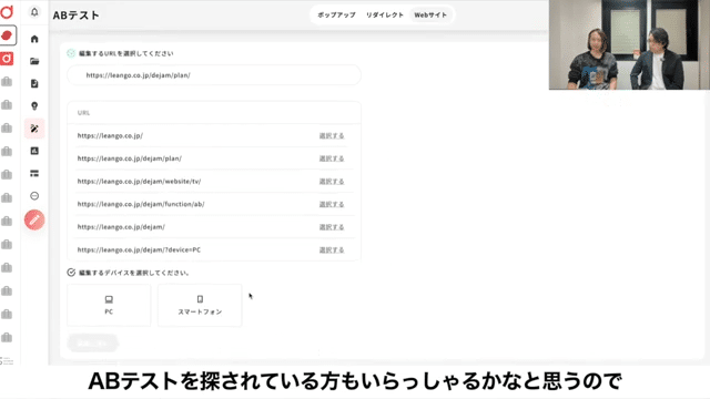あとはさっきのところで、Googleオプティマイズが終わったというところで、ABテストを探されている方もいらっしゃるかなと思うので。弊社のABテスト機能をちょっとお見せします。こちらも本当に簡単です。