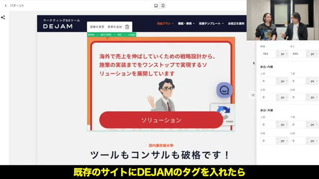 既存のサイトにDEJAMのタグを入れたら、こんなふうにいじれるようになるんですね。