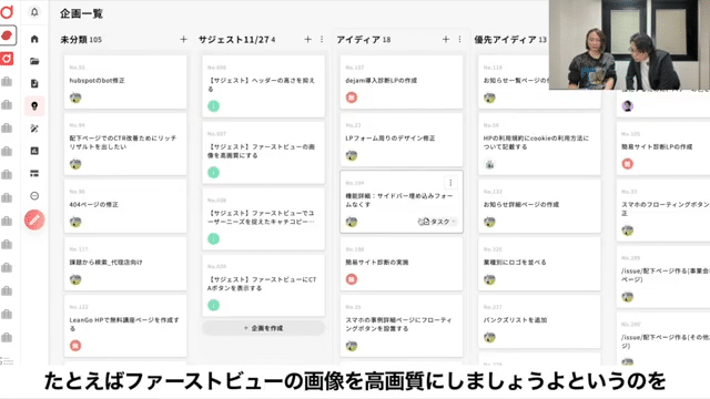 DEJAMがプロジェクト管理機能も備えているというところが特徴でして、今できていなかった企画というのが自動で作成されるんですよ。