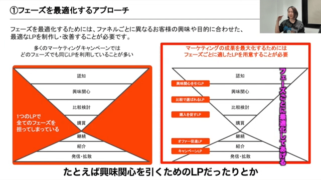 だから一般的にABテストをしてどっちが良いかみたいなところをやっていくと思うんですけど、本来コンバージョン数を最大化するとなった場合って、ユーザーのパーソナリゼーションだったり、広告のキャンペーンごとに出し分けをしていこうね!みたいなのが、よくイベントだったりとかセミナーとか本とかで語られがちなんですけど。