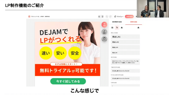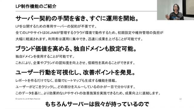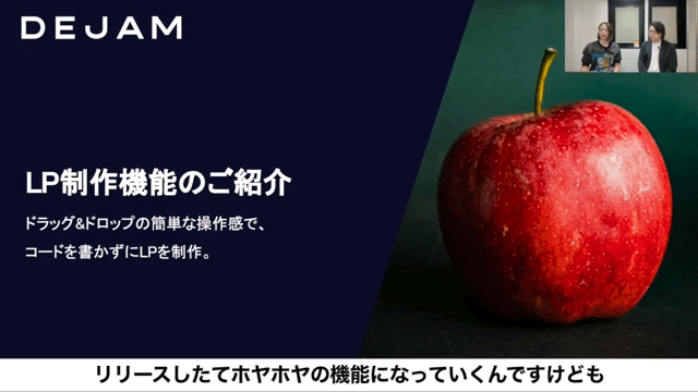 そういうときに画像で作ったLPのコードをちょっと書くためだけにサーバーを契約してとか、コードを書いてとか、とてもめんどくさいと思うので、そういうときは本当にホスティングまで、要は公開までDEJAMがやってくれるので。