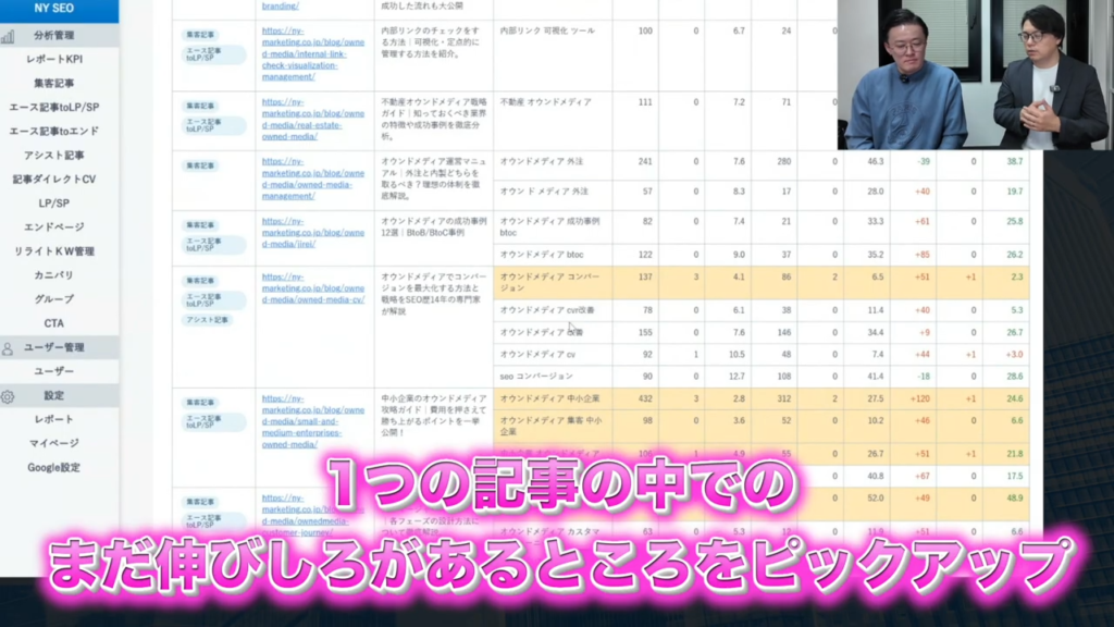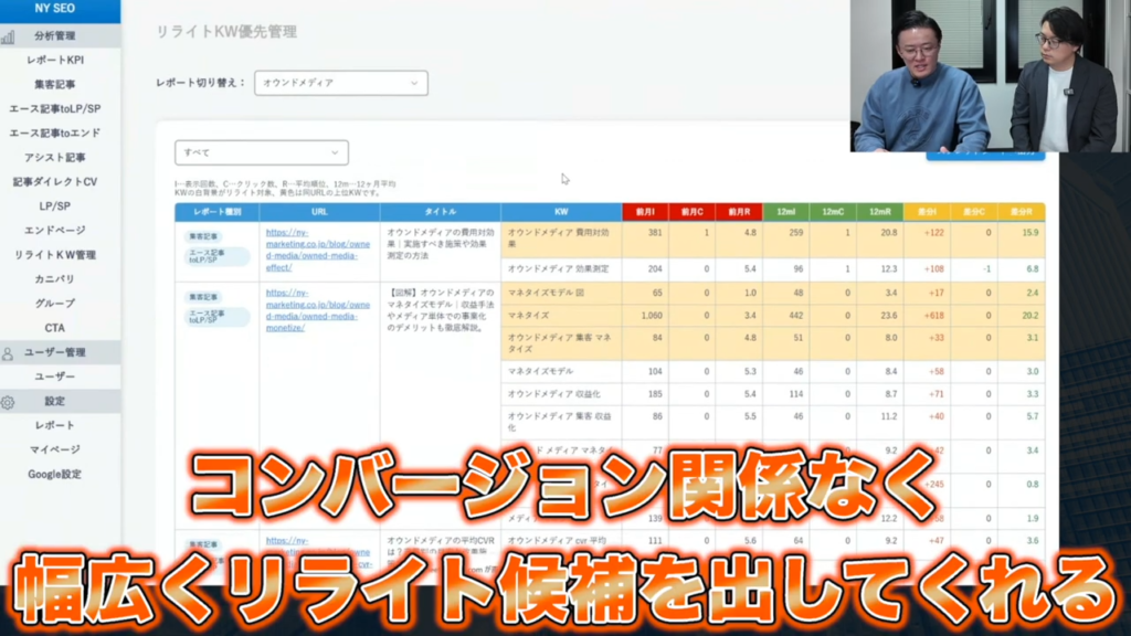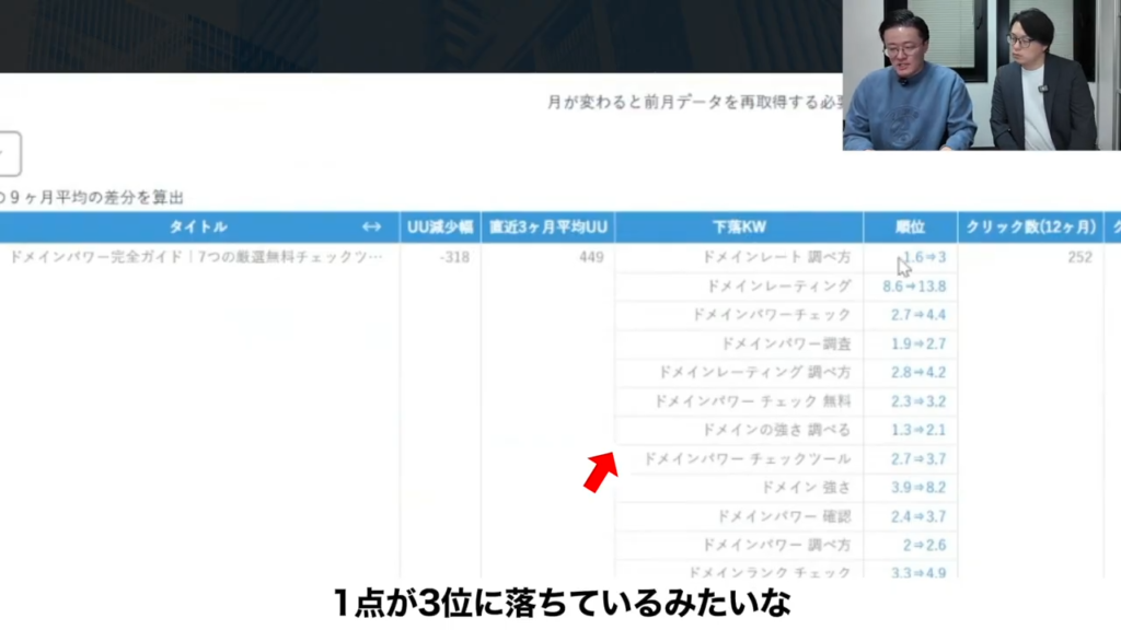 じゃあ記事をリライトしなきゃいけないとなった場合は、どういうキーワードを起点にやらなきゃないけないかとか、そういうのもわかったりするんですか?