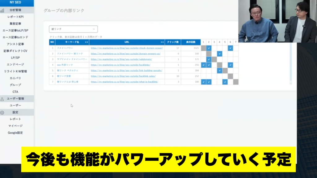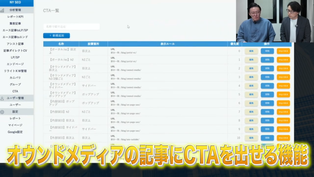 メディアが3、4年間ぐらい僕が毎月時間をかけて分析して記事も人が作ってやってきたんですけど、そろそろ限界だなというのもあるし、スケールもできないし、お客さんもAIという言葉が出るじゃないですか。AIを使って安くできないのかみたいなこともみんな聞いていると思うんですけど、それを実現するためにこのAIライティングも作ったし、分析機能もつけたので、これがつけば記事も作れるし、CTAも出せるし、ABテストできるし、その後の分析もできるしという一気通貫な機能になると思ってるんです。