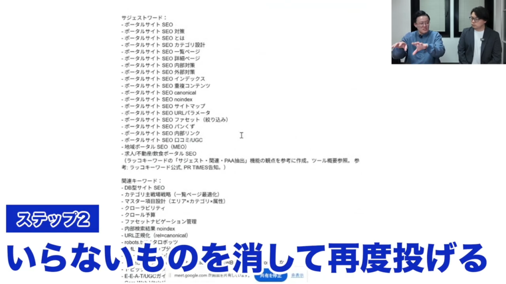 ここでまた人がこれはいらないなとか、これは違うなということは修正して。最後にまたそれを投げると。