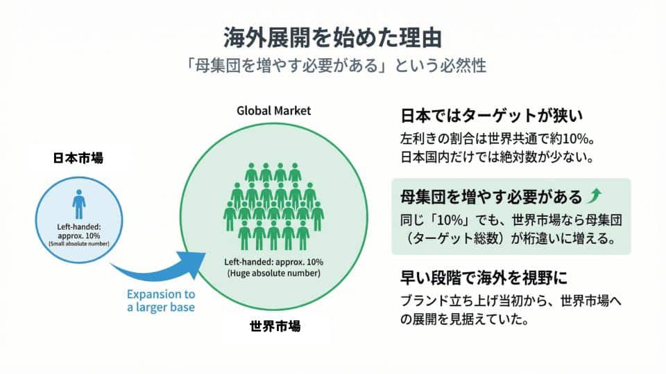 2-1. 海外展開を始めた理由:ニッチのため母集団を広げる必要があった